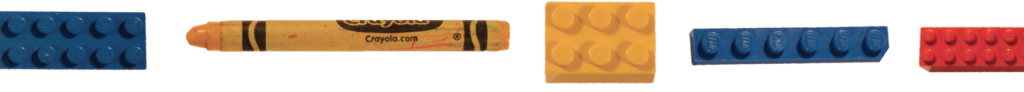 Toys and crayons lay across a table.