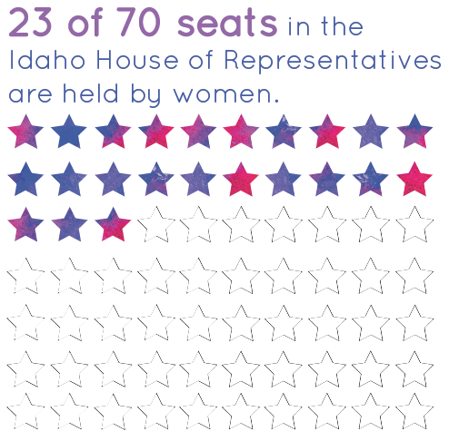 In the U.S., 22 women hold seats in the Senate and 83 women hold seats in the House of Representatives. At the state level, women make up 25 percent of all state legislatures. Idaho women hold just over 30 percent of the state legislature.