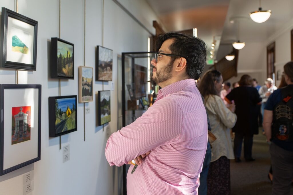 Palouse Plein-Air accommodates participants’ diverse interests and offers multiple awards, such as Best Palouse, Best Downtown, Best Historical, and Best Lil’ Painting. When asked about his most memorable moments from these events, Johnson replied, “I am always proud to see my current or former students’ artworks recognized with awards by the juror.” He added, “It is always memorable to try to break the three-hour record of hanging 105 works in the gallery with Megan Cherry, the city arts director.”